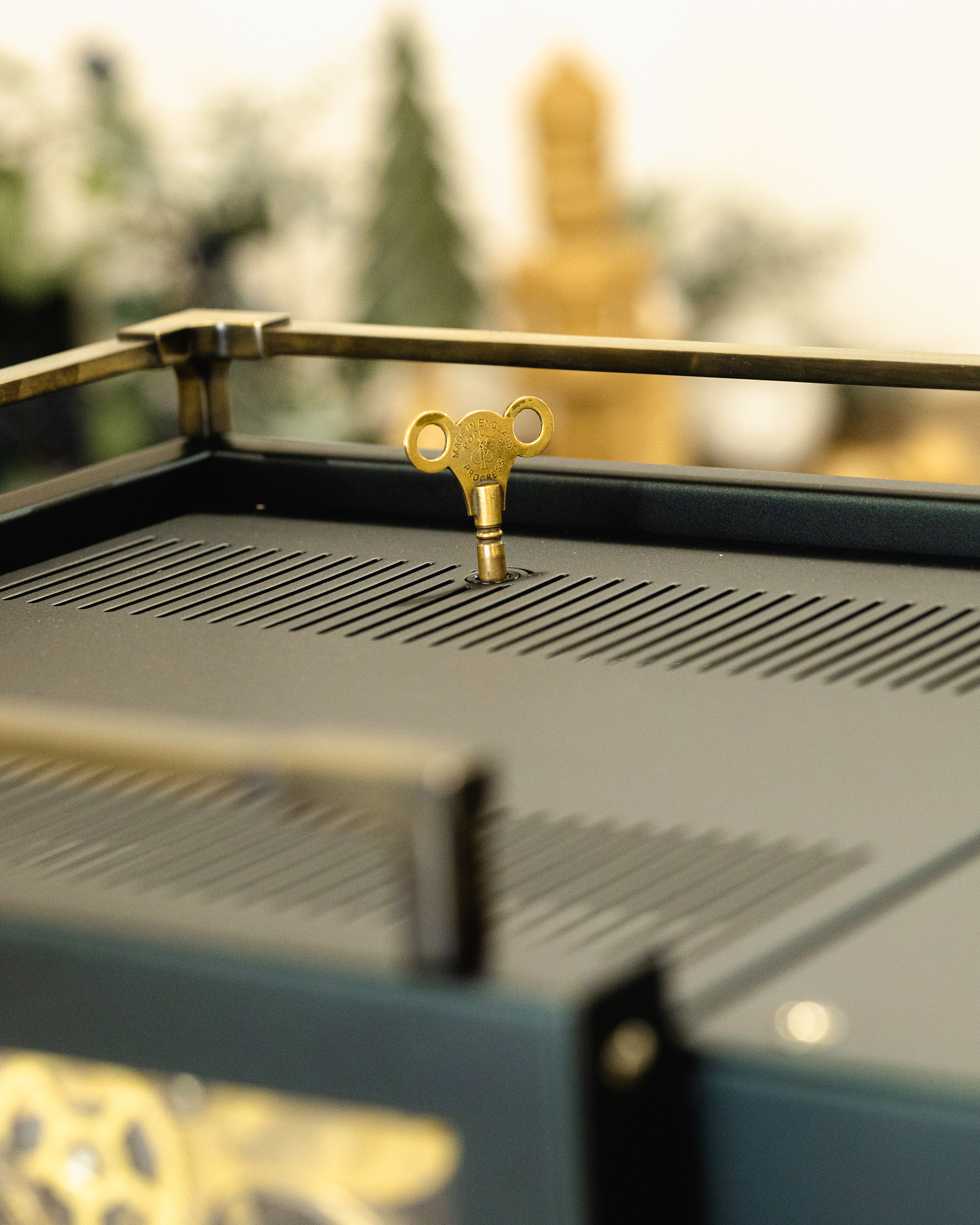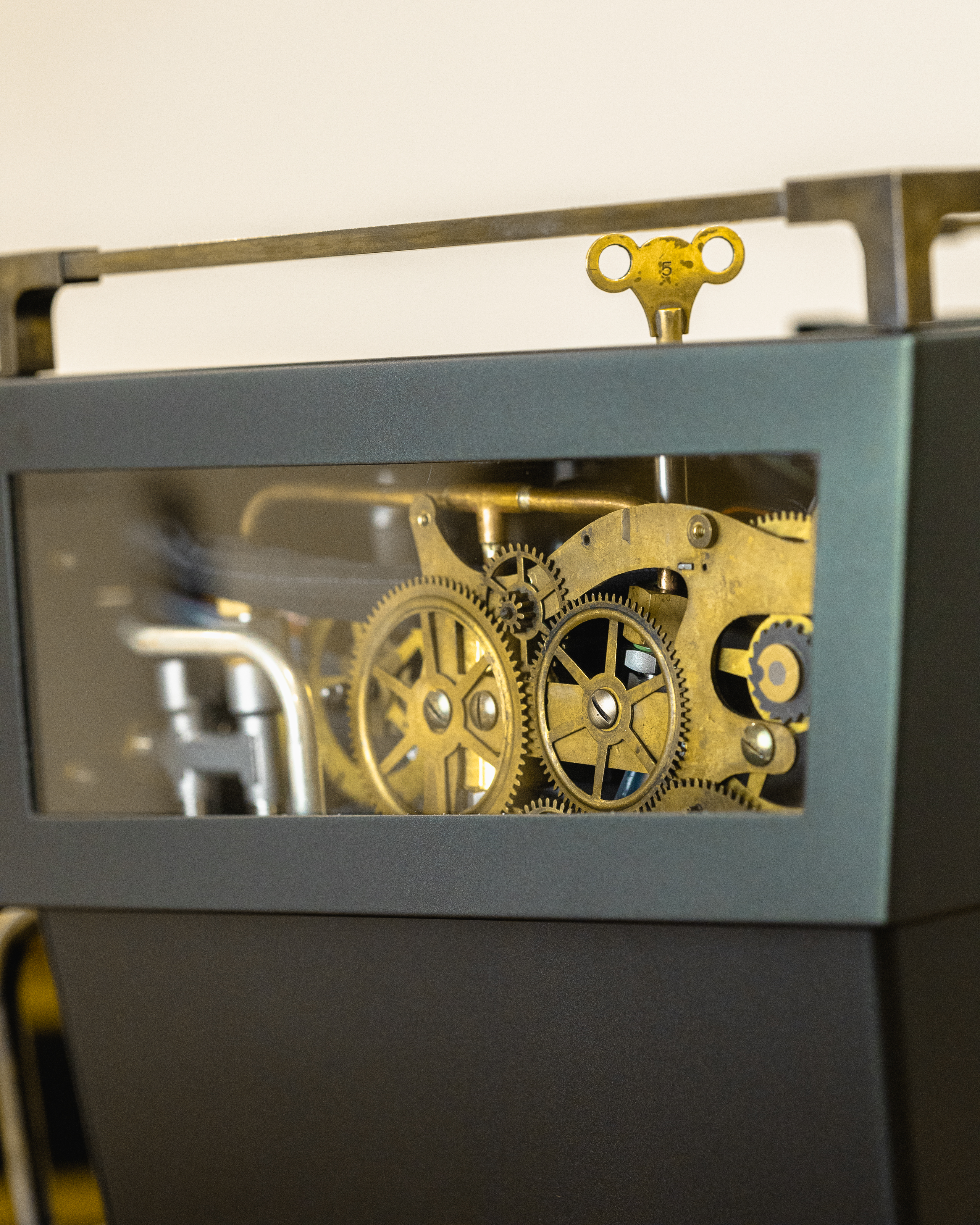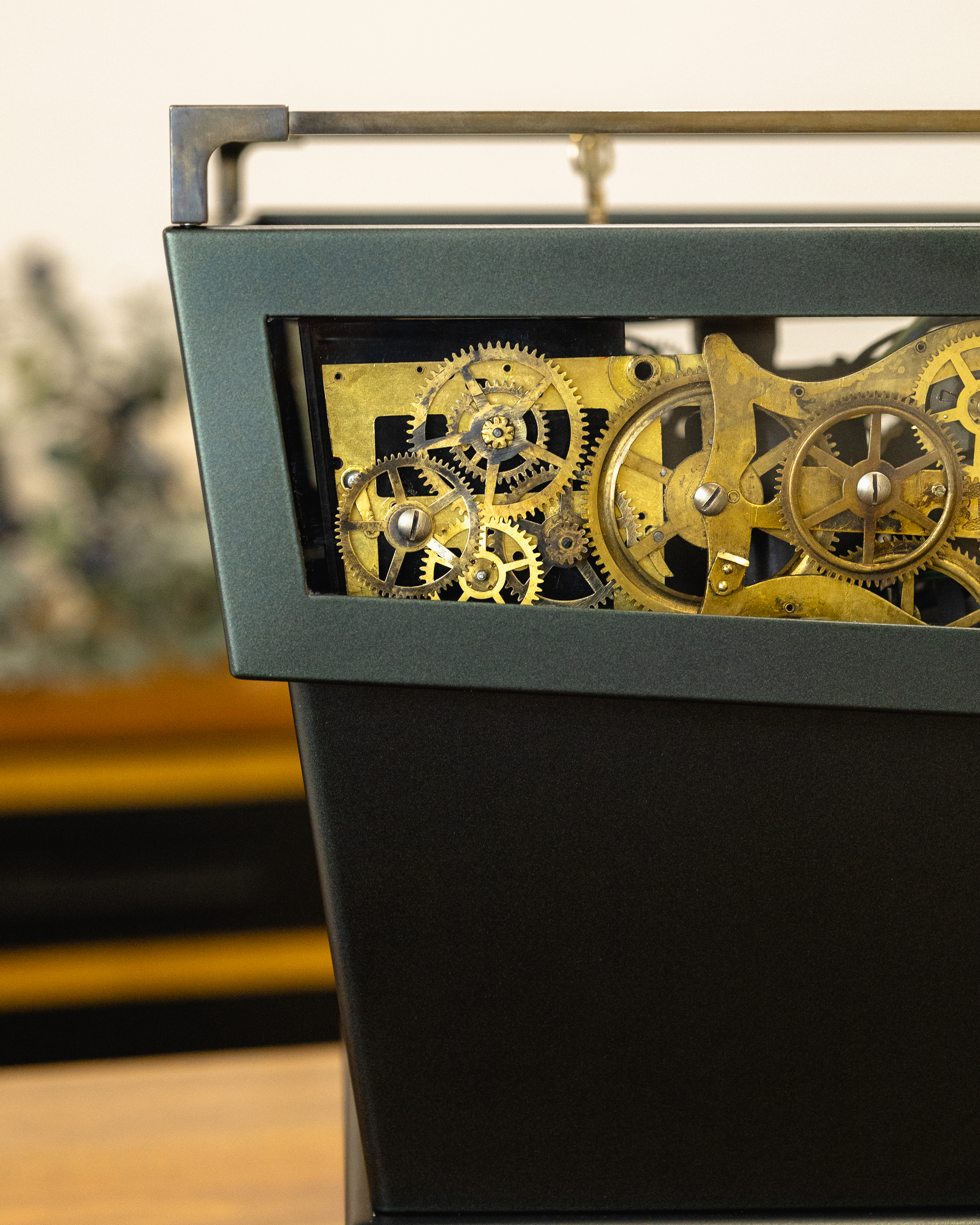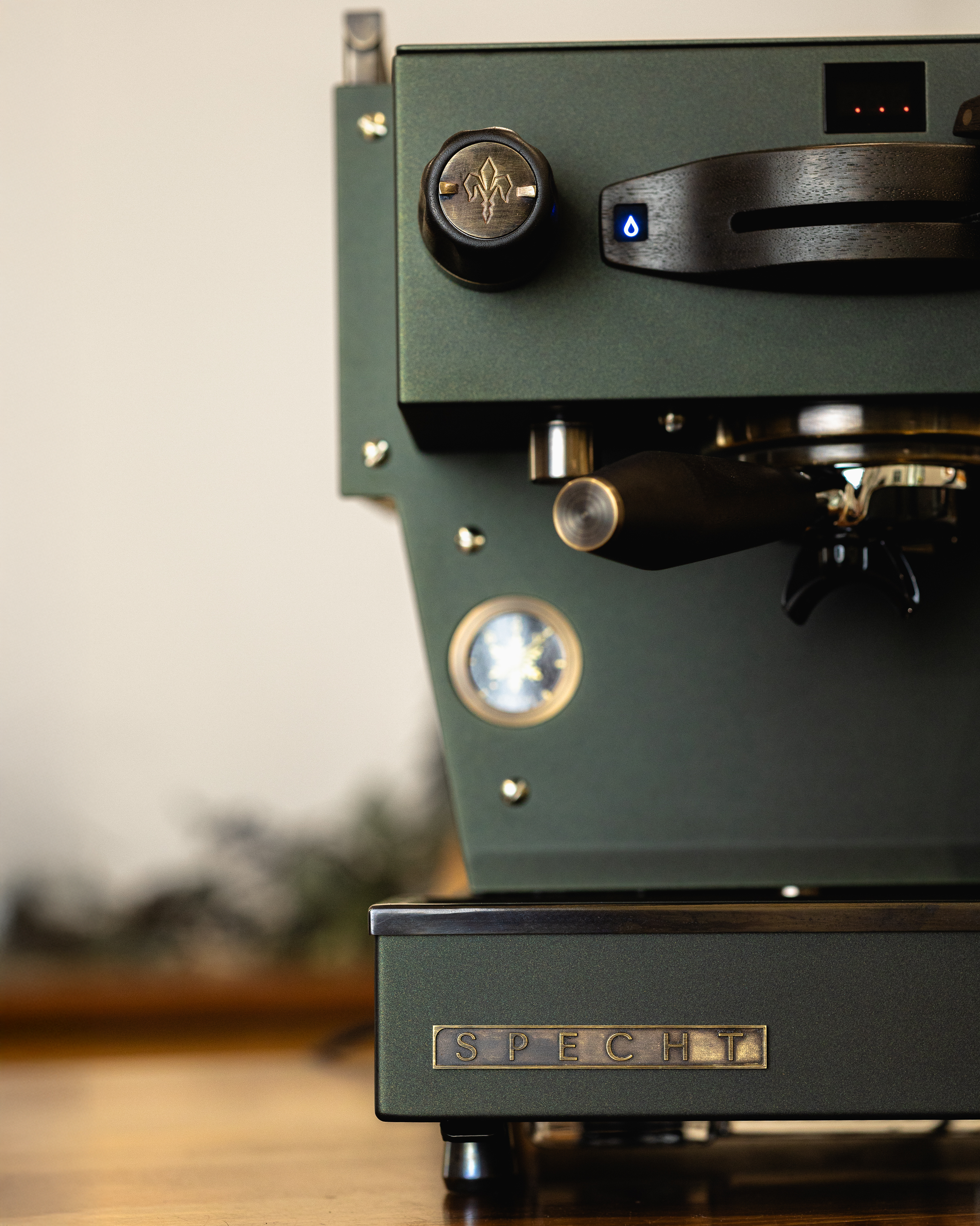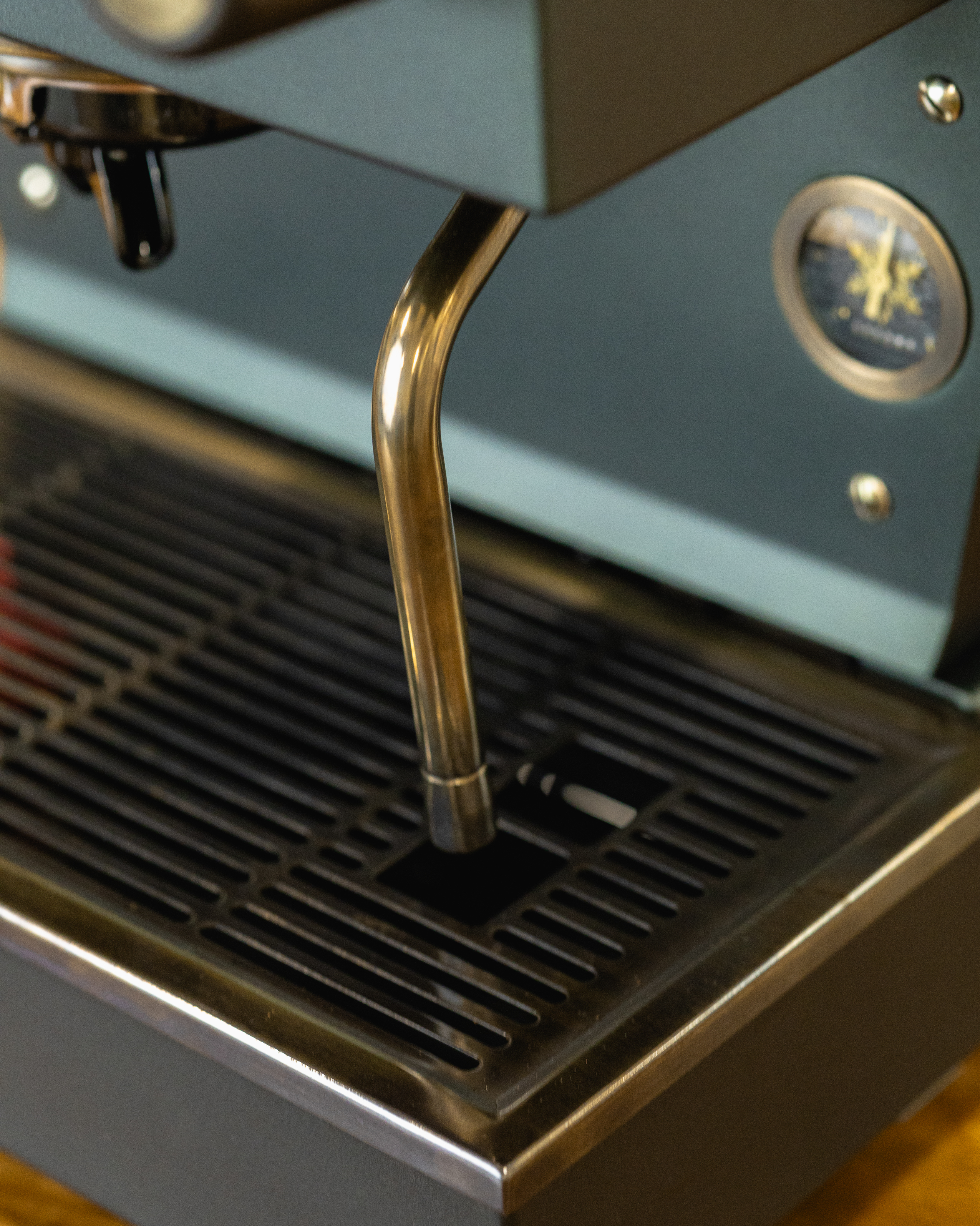 This reimagined Linea Mini R redefines the Christmas palette with a deeper, moodier matte metallic green finish. The aged bronze and smoked walnut accents add timeless character, reminiscent of time-tested tools, weathered through years of service. For a truly magical touch, peer through its glass windows and you will find bronze cogs repurposed from a 19th-century Seth Thomas clock, representing the countless moving parts it takes to bring the holidays to life.