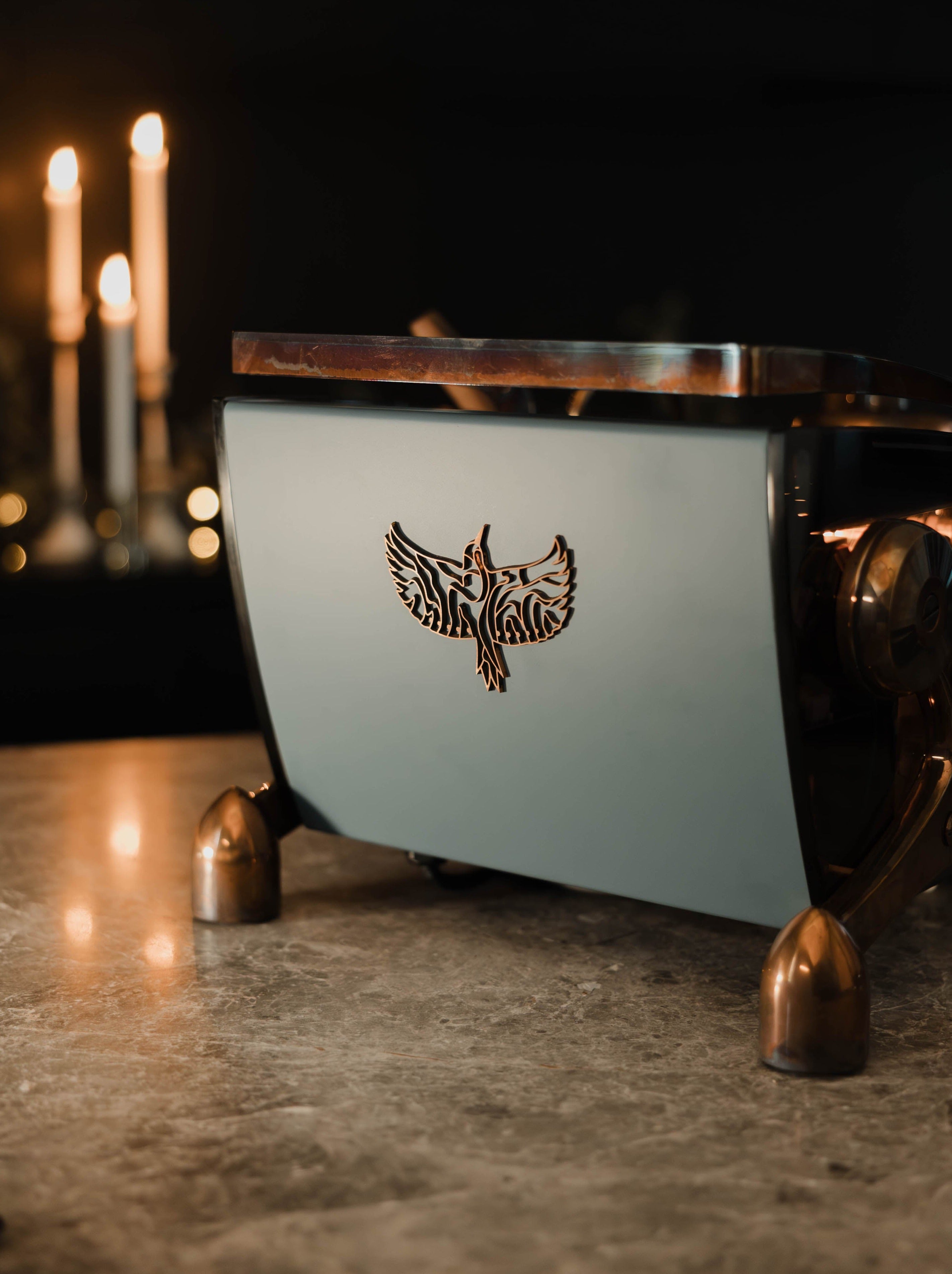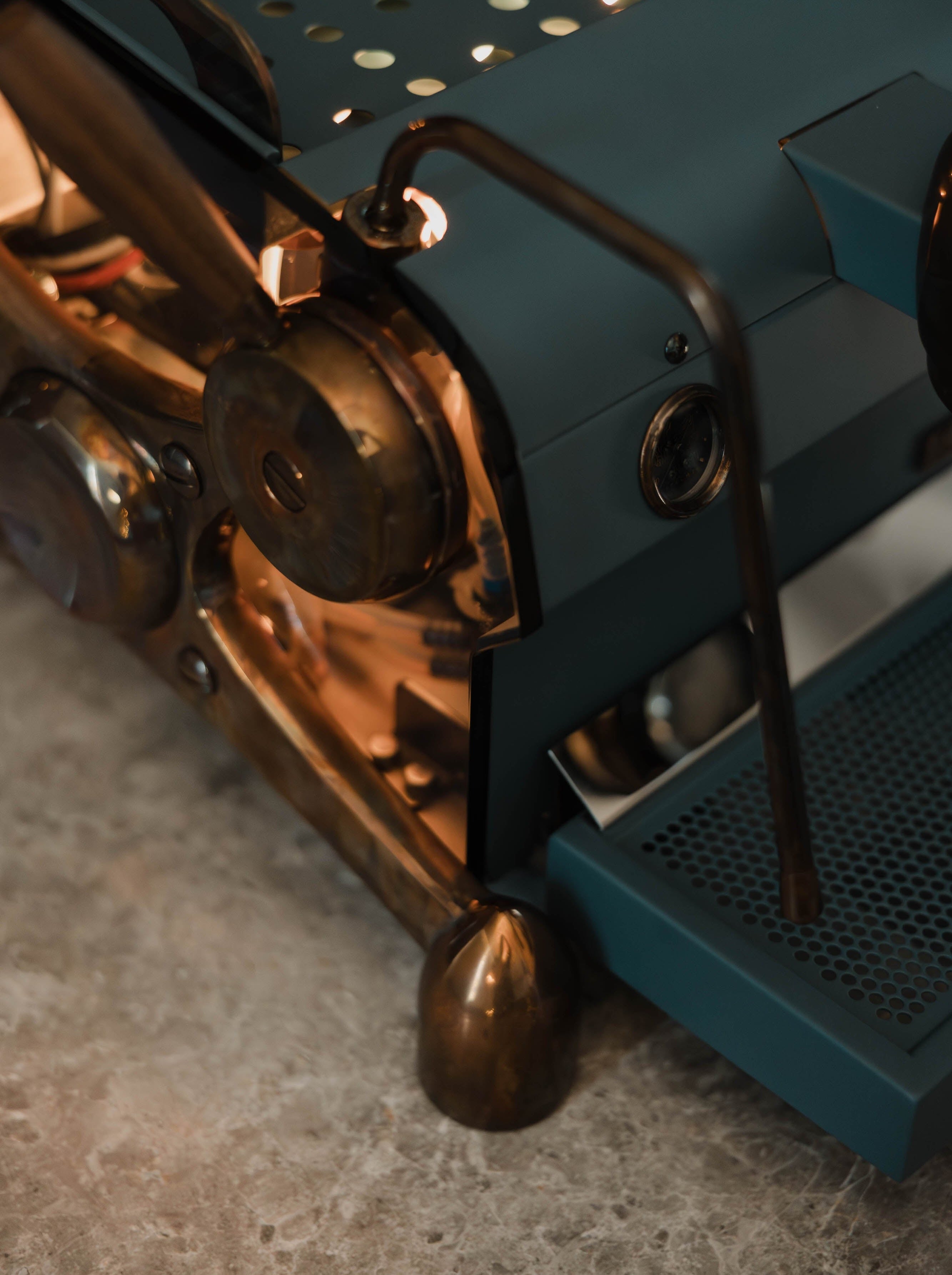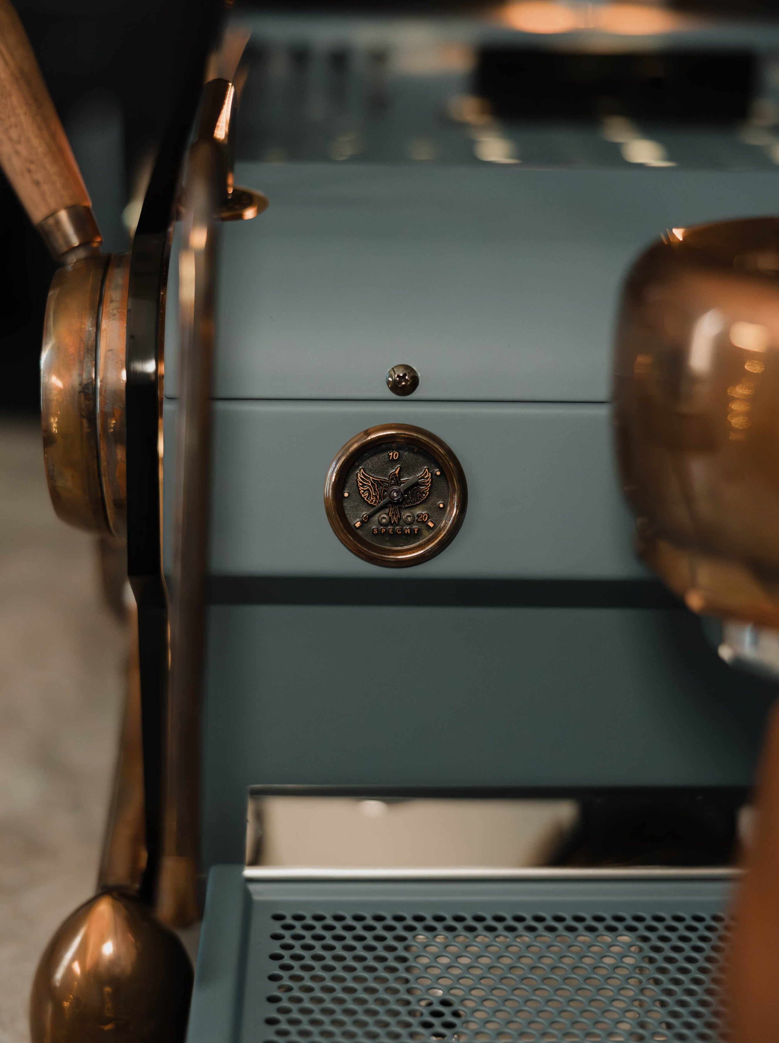 Let this SLAYER Single Group bring the serenity of dusk into the home with Blue Ridge Powder Coat, Burnt Copper highlights, Walnut wood accents and Backlit Smoked Acrylic side panels. This Specht also features our brand new cup rail, embossed brass gauge faces and Specht badges.