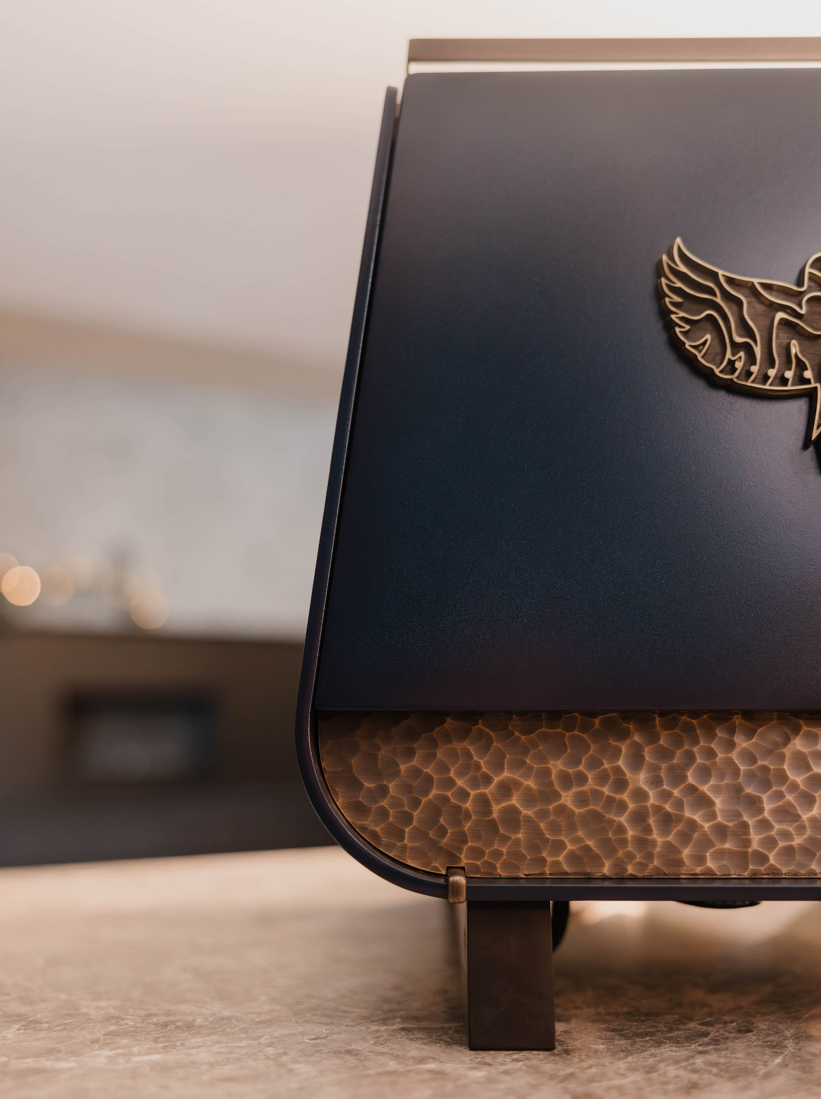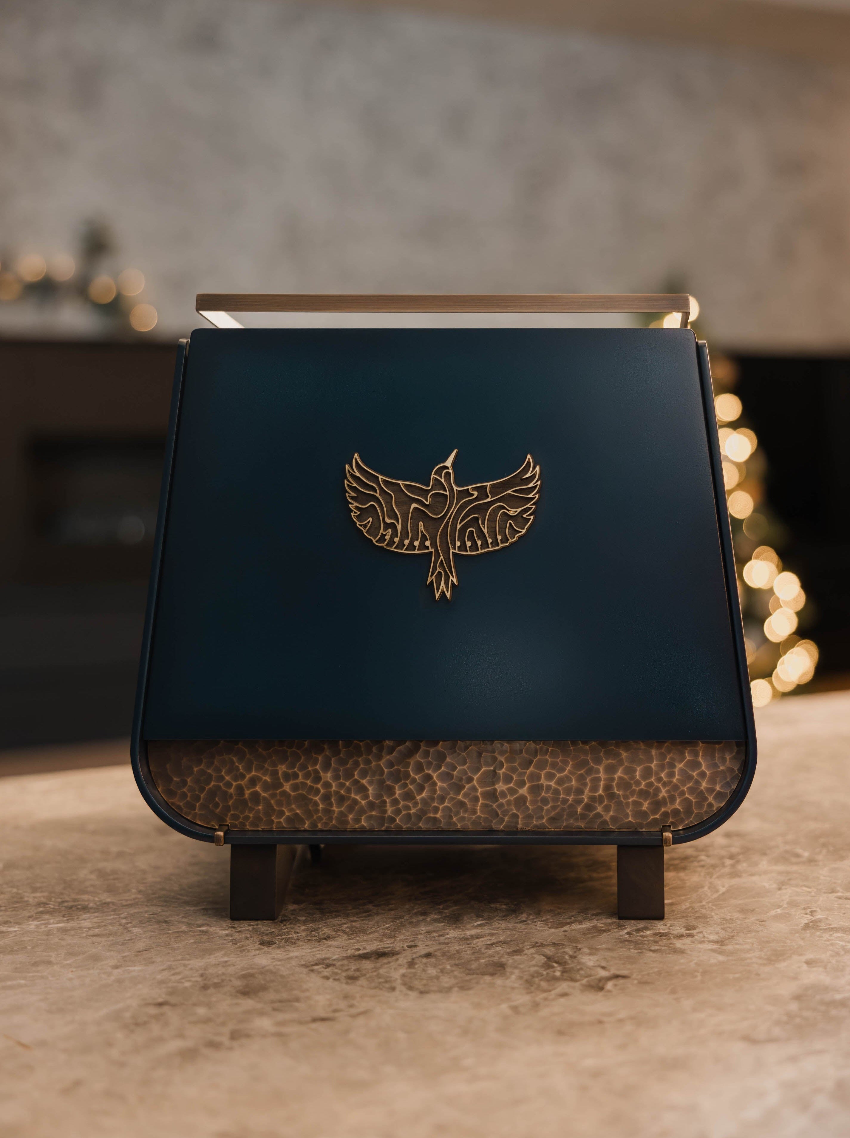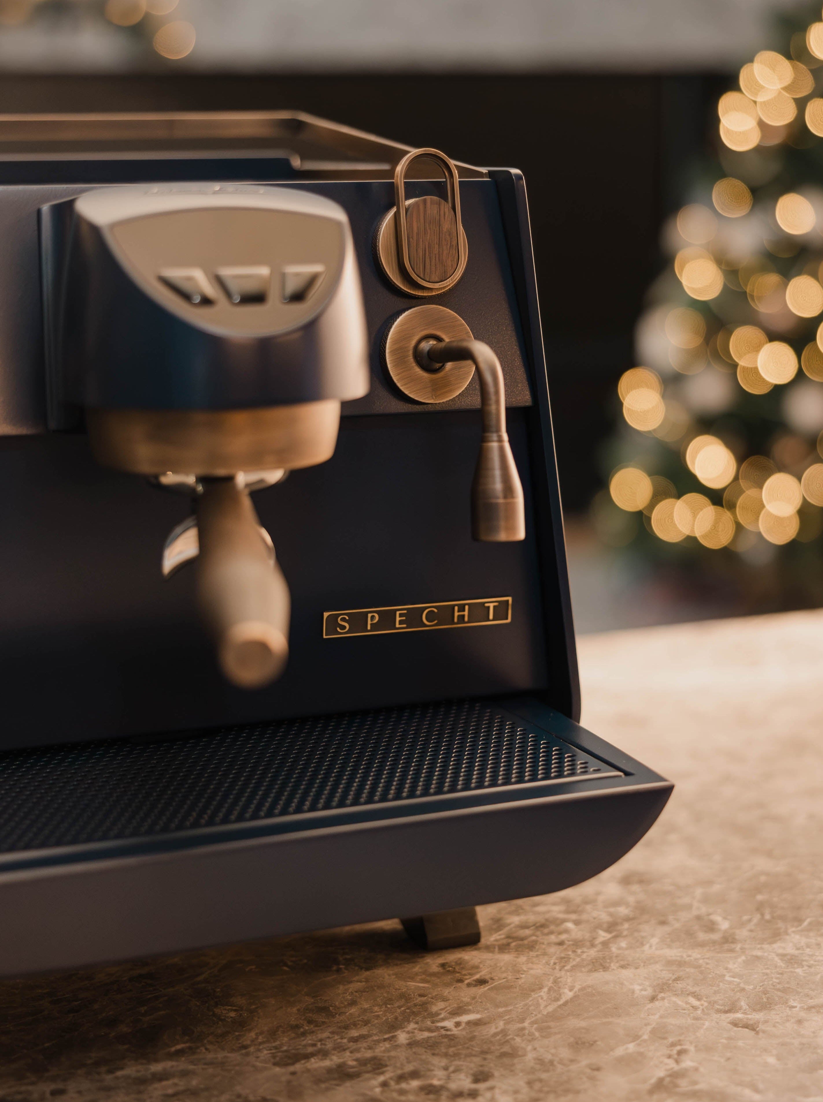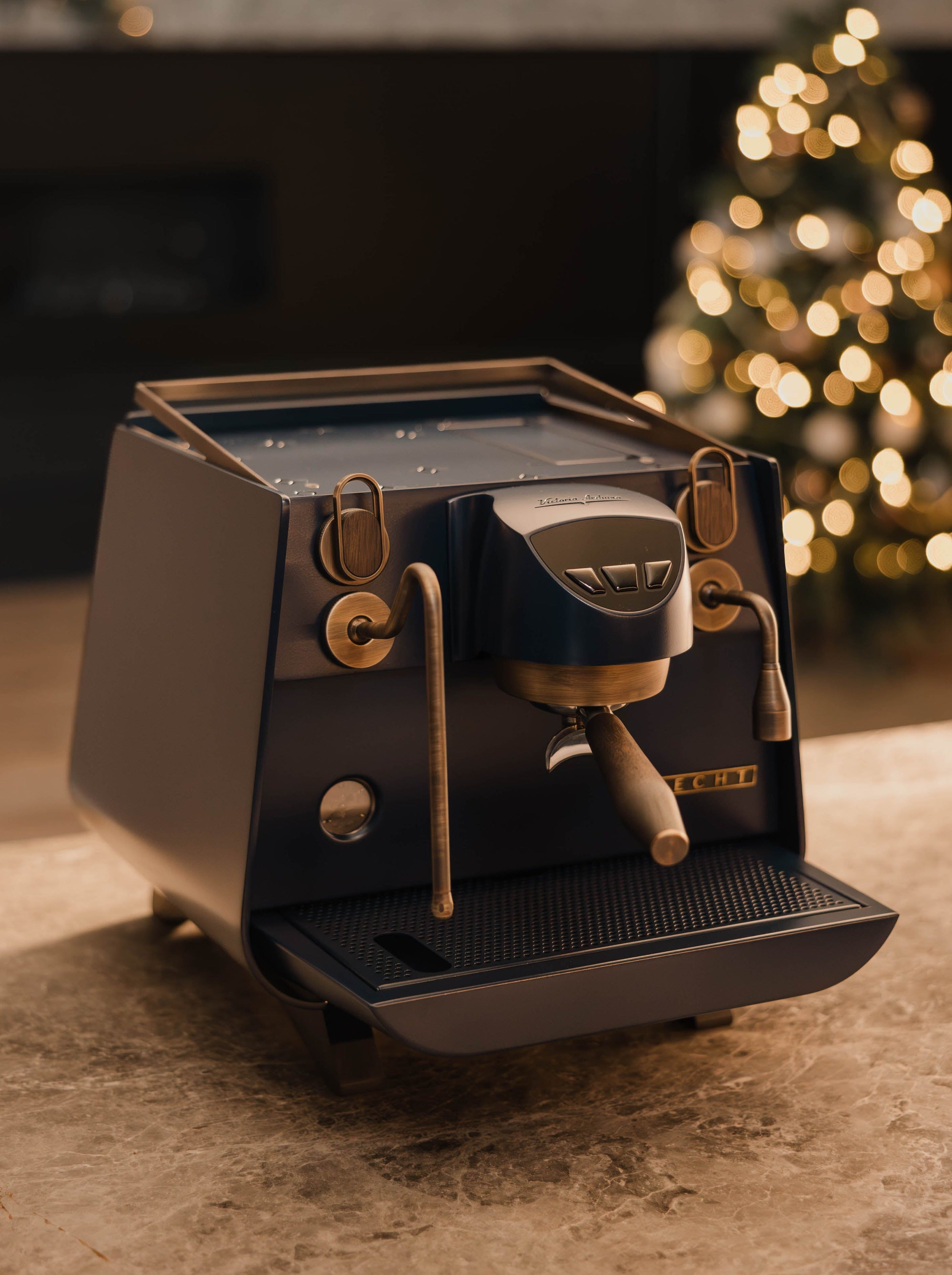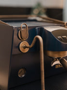 Make the Mezzanotte Victoria Arduino E1 Prima a part of your joyous festivities this Christmas the handcrafted hammered brass back panel adds detail that cannot be replicated. Other details we've included are Dark Blue Frost Powder Coat with a Matte Clear Coat to add depth to the finish, Aged Brass highlights, Smoked Walnut Legs, solid Brass gauge faces and our fresh take on the steam and hot water actuators to add elegance to your next midnight festivities.